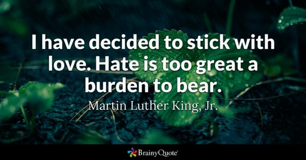 Hari ini saya membuat keputusan penting. Saya berhenti membenci. Opung Martin Luther King, Jr benar sekali, kebencian adalah beban yang sangat berat untuk kita pendam di hati kita. Kebencian tidak pernah berdampingan dengan ketenangan dan kedamaian..