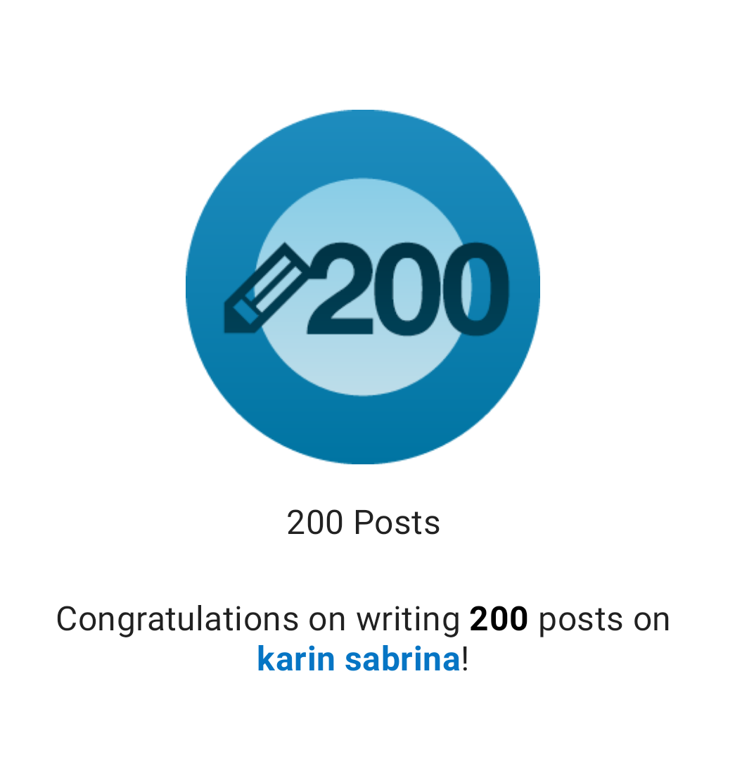 Yes! Congratulations to me !πππ I’ve write 200 posts on this blog; I’ve write two hundred things about my self! My gudness!! I wonder how my husband Can keep his calm with a wife like me π π π and oh.. I also write about books that I’ve read.