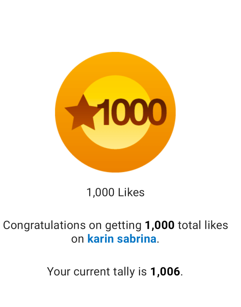 Hmm.. it's okay, this thousand likes are mine and just mine. No body else can be just like me anyway.