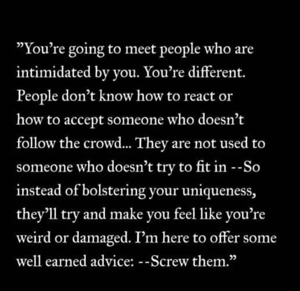 But I can tell you my dear, it's good to be notice-able. Consider that as your gift in life. Wear that gift proudly. Walk tall.