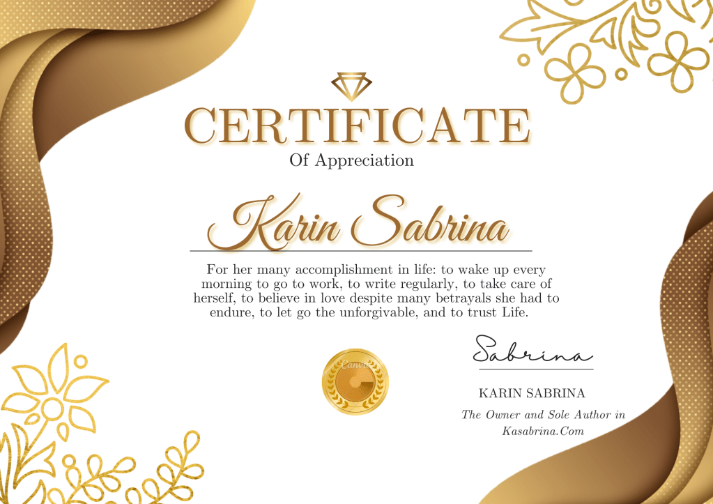 I made a certificate for myself today. These last few days, I was kinda upset with everything and everyone, so I hope, by making some serious looking “certificate” for myself, I could light up the mood a bit.