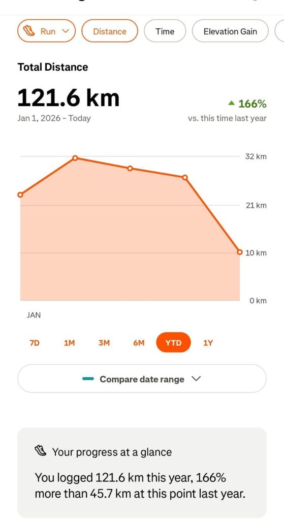 So, according to Strava, I’ve run 121.6 this year. From 1st January to 31st January. I never knew I could be like this …. And yes I’m proud of these stats! Impressive!
